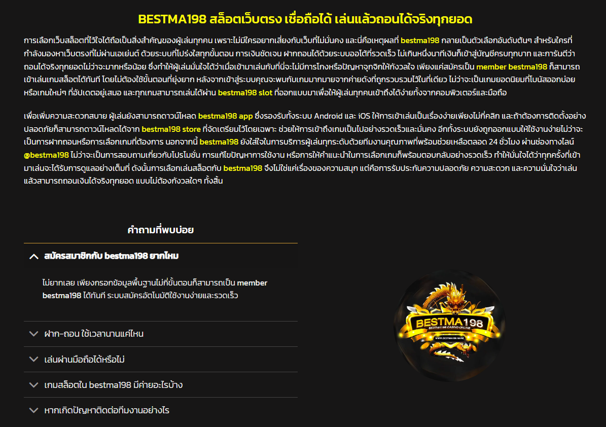 bestma198 สล็อตเว็บตรง เล่นง่ายจ่ายจริง ไม่มีบิด