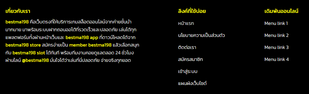bestma198 เดิมพันได้ไม่อั้น การันตีกำไร ได้เงินชัวร์ รวมเกมสล็อตจากค่ายชื่อดัง แจกรางวัลใหญ่จัดเต็ม สร้างกำไรเว็บสล็อตดีที่สุด bestma198 คือเว็บตรงที่ให้บริการเกมสล็อตออนไลน์อย่างครบวงจร เล่นง่าย ปลอดภัย และจ่ายจริงทุกยอด ระบบฝากถอนออโต้รวดเร็วไม่ถึงนาที รองรับทั้งธนาคารและวอเลท ไม่ต้องแจ้งสลิปให้ยุ่งยาก ตัวเว็บถูกออกแบบให้ใช้งานง่ายทั้งบนคอมและมือถือ แถมยังมีแอป bestma198 app ที่ช่วยให้เข้าเล่นได้สะดวกสุด ๆ ทุกครั้งที่สปินคือโอกาสทำกำไรแบบไม่จำกัด พร้อมทีมงานดูแล 24 ชั่วโมง